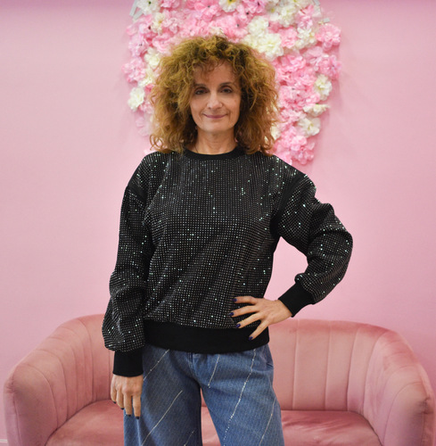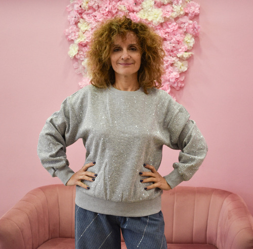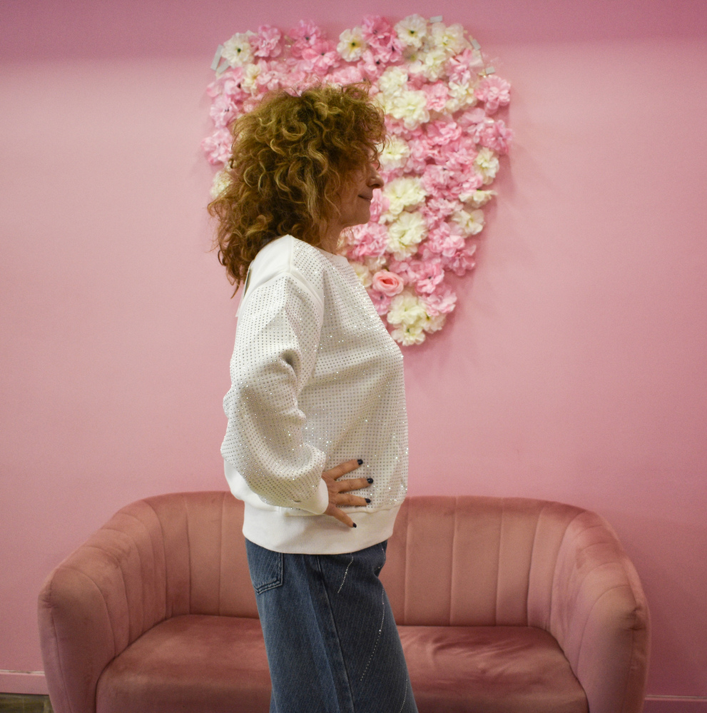 Φούτερ σε άνετη γραμμή με strass μπροστά